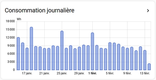 Pour suivre ma consommation électrique journalière j'ai simplement créé 2 cartes "Graphique des statistiques"