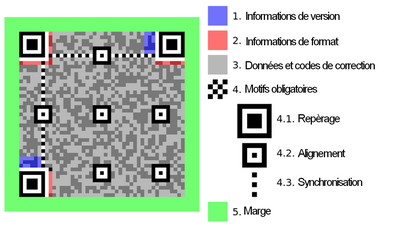 - Des zones d'information de format et de version accolées aux motifs de repérage
