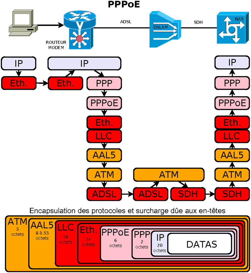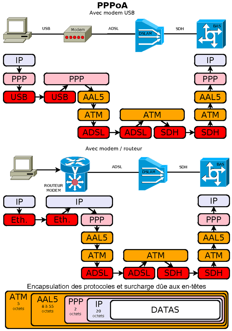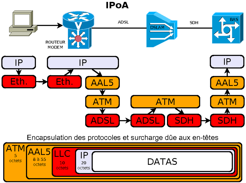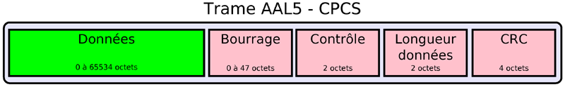( RFC 2684 ) Couche permettant d'adapter les données au réseau ATM. On utilisera la couche AAL5 dédiée aux données. 2 méthode d'encapsulation sont proposées : LLC ou VCmux. La méthode LLC est la plus courante. La longueur d'une trame AAL5 doit être un multiple de 48 pour être découpée dans les cellules ATM.